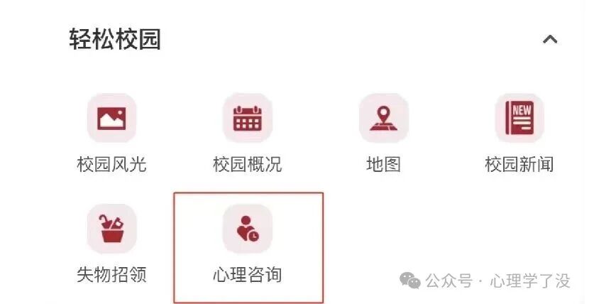 1.手机打开“张家界学院"APP,点击主页下方“应用",找到“轻松校园一一心理咨询”
